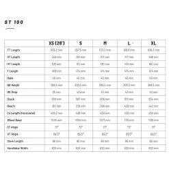 Le VTT ST 100 existe avec le même cadre en variante FEMME: selle adaptée, cintre plus étroit, potence plus courte, fourche avec un ressort plus souple et leviers de freins rapprochés.