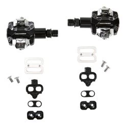 Ce VTT est équipé d’une sonnette, d’éclairages, de catadioptres de roues (réflecteurs) et de pédales plates.